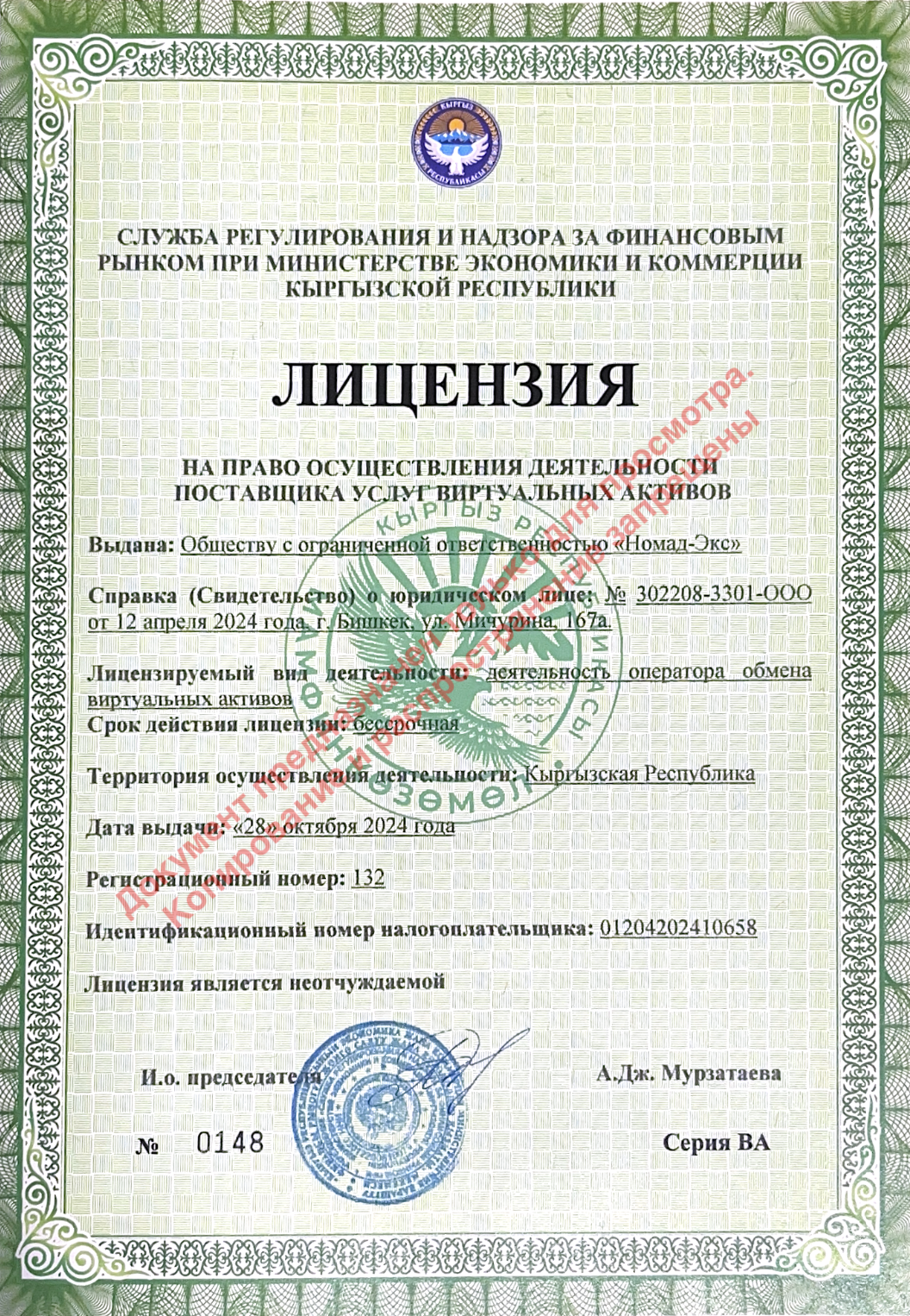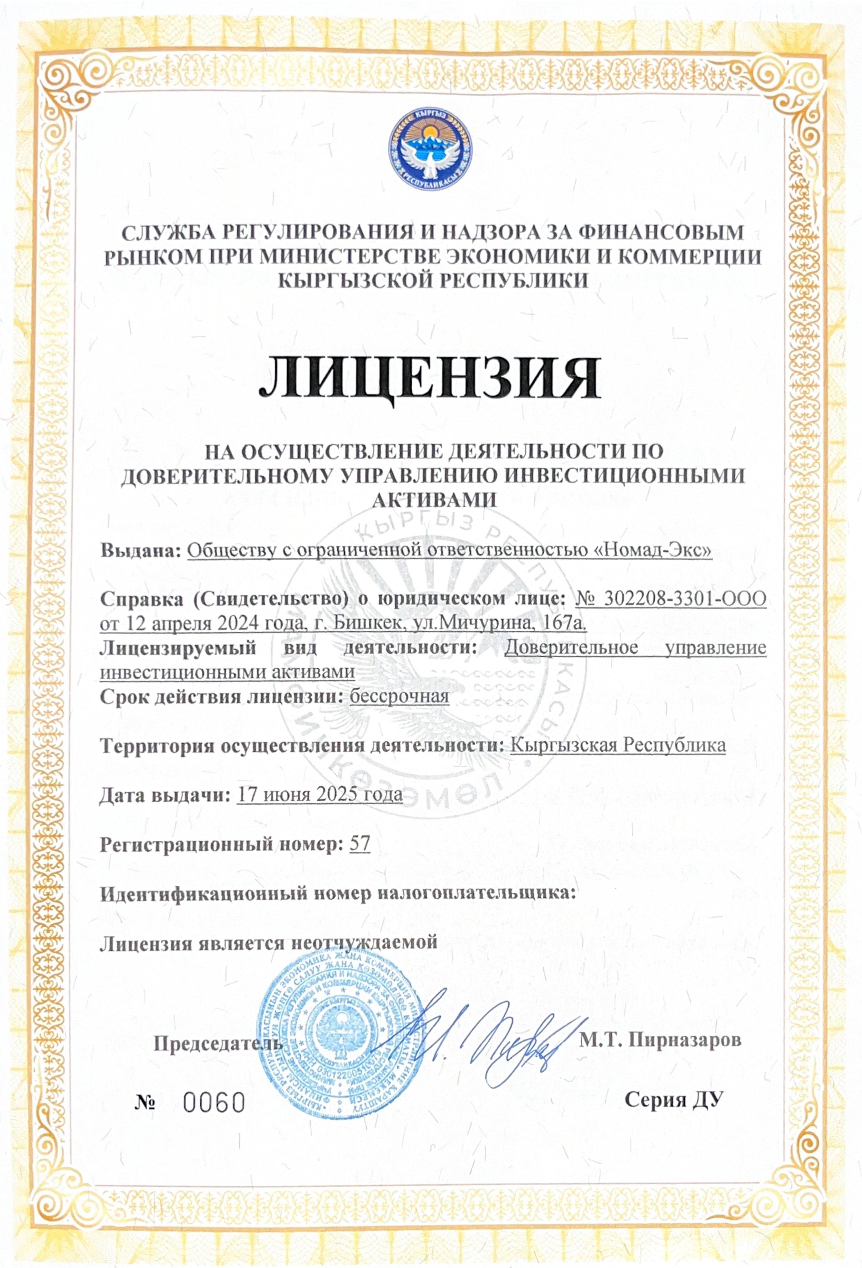 Орган выдачи: Служба регулирования и надзора за финансовым рынком